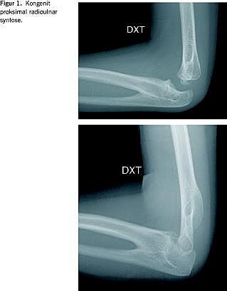En synostose mellem den proksimale del af radius og ulna er en sjældent forekommende udviklingsabnormitet, som sopstår som følge af en mislykket segmentation mellem radius og ulna (Figur 1 ).