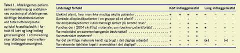 Forløbsbeskrivelse: Det skriftlige materiale på afdelinger med kort og en afdeling med mellemlang indlæggelsesvarighed bestod af sammenhængende og opdaterede tværfaglige patientforløbsbeskrivelser og/eller tjeklister, som blev anvendt i det daglige (Tabel 1).