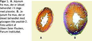 Hidtil har den medicinske behandling af patienter med tarminsufficiens og tarmsvigt været baseret på stoppemidler (codein, opium og loperamid) samt syresekretionshæmmende midler (H2 -receptor-antagonister eller protonpumpeinhibitorer). De seneste års forskning har imidlertid tilvejebragt ny viden om de patofysiologiske karakteristika ved korttarmssyndromet og viden om mekanismerne bag tarmens adaptation efter tarmresektion. Det er således blevet klart, at den hormonale feedback, der medieres via hormoner secerneret i forbindelse med fødeindtagelse fra terminale ileum og colon, reducerer den gastriske sekretion og tømning samt øger den proksimale tarms vækst. Dyreeksperimentelle forsøg og forsøg med mennesker har vist, at glucagon-like peptide (GLP)-2 mindsker den gastriske sekretion og tømning og opregulerer tarmens blodforsyning. GLP-2 er påvist at have vækstfremmende effekt på tarmens slimhinde (Figur 1 ), ligesom der er påvist positive effekter på tarmens absorptive funktion [1]. Derfor gennemførte vi på en medicinsk gastroenterologisk afdeling et pilot-, proof of concept -studie, hvori vi kunne påvise en reduktion af korttarmspatienternes fækale væsketab på ca. 400 g pr. døgn ved subkutan behandling med GLP-2 [2]. GLP-2 har imidlertid grundet nedbrydning via enzymet dipeptidyl-peptidase-IV en halveringstid på blot syv minutter. Det er nu via en ændring af aminosyresekvensen lykkedes at producere en analog af GLP-2, Teduglutid, med en halveringstid på 30 minutter. Teduglutid er afprøvet i et fase 2-studie, hvor det fækale væsketab kunne reduceres med ca. 750 g pr. døgn, mens effekten på det fækale energitab var omkring 1.000 kJ pr. døgn [3]. Resultaterne fra et multicenter-, internationalt fase 3-studie opgøres i øjeblikket. Sammen med NPS Pharmaceuticals forsøger Nycomed at bringe Teduglutid på det amerikanske og europæiske marked. Meget tyder således på, at vi inden for en overskuelig tid får endnu et stof til behandlingen af patienter, der har tarmsvigt som følge af korttarmssyndrom.