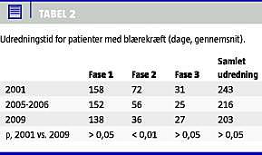 Den samlede udredningstid for 2001 var 243 dage, og i perioden 2005-2006 blev denne reduceret til 216 dage med en yderligere reduktion til 203 dage i 2009.