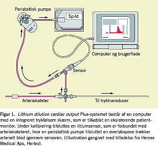 I denne artikel vil vi beskrive lithium dilution cardiac output (LiDCO) Plus-systemet (LiDCO Ltd., Cambridge, Storbritannien), som er en minimalt invasiv kredsløbsmonitorering, der kræver et centralt venekateter (CVK) eller perifer veneadgang og invasiv blodtryksmåling med kateteret typisk anlagt i a. radialis.