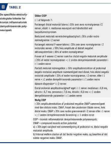 typisk har aksonale forandringer. De specifikke elektrofysiologiske kriterier for CIDP er angivet i Tabel 2.