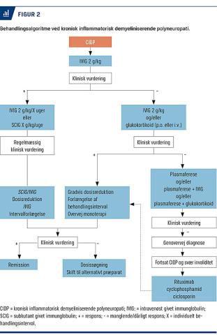 Det kan endnu ikke forudsiges, hvilke patienter der responderer på behandling, og hvilke patienter der går i remission uden behov for yderligere behandling. I Danmark følges den behandlingsguideline, som er udgivet af European Federation of Neurological Societies og Peripheral Nerve Society [29], og som ligeledes er implementeret i den danske neurologiske behandlingsvejledning.