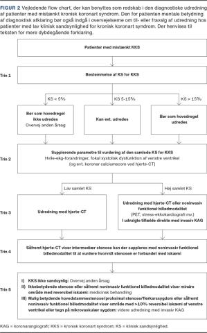 I 2019 blev den europæiske behandlingsvejledning fra 2013 opdateret. Her blev kronisk koronart syndrom (KKS) introduceret som ny betegnelse for stabil koronarsygdom [2]. Opdateringerne blev i 2020 indarbejdet i den danske nationale behandlingsvejledning med enkelte forbehold [3]. Den nationale behandlingsvejledning opdateres årligt [4].