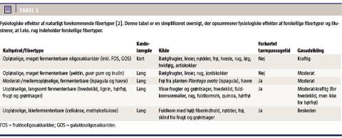 tilstedeværelsen af cellulose, hemicellulose, pektin, gums, resistent stivelse og lignin. Kostfibre kan inddeles i: 1) vandopløselige, viskøse, 2) vandopløselige, nonviskøse og 3) vanduopløselige fibre (Tabel 1). Kostfibre kan desuden opdeles i kort- og langkædede samt efter deres evne til fermentering. Ingen fødevarer undtagen fibertilskud indeholder »rene« fibertyper. I rugbrød indgår der for eksempel både opløselige og uopløselige fibre [1-3].