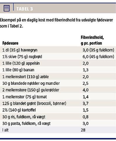 Epidemiologiske data har vist en sammenhæng mellem obstipation og lav indtagelse af fibre [4]. I de seneste ti år er danskernes indtag af fuldkorn, frugt og grøntsager steget. Der indtages i dag gennemsnitligt 60 g fuldkorn/10 MJ pr. dag mod kun 36 g i 2004, og det gennemsnitlige indtag af kostfibre er nu 21 g pr. dag. Dette er dog stadig lavere end de officielt anbefalede 25-35 g pr. dag [3, 5, 6].