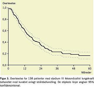Konklusion: De fremlagte resultater viser, at en ikke ubetydelig del af patienterne med stadium III, der behandles med moderne kurativt anlagt strålebehandling, bliver langtidsoverlevere.
