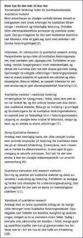 <li>Malterud K. Kvalitative metoder i medisinsk forskning (2. utgave). Oslo: Universitetsforlaget, 2003.</li>