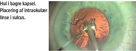 Ved den første kliniske høring for 2010 fandtes en samlet komplikationsfrekvens på (18/1.448) 1,2%. Komplikationerne var særligt relateret til små pupiller, der ikke udvidede sig tilstrækkeligt på mydriatika. Vi indførte derfor en mere vidtgående praksis med mekanisk peroperativ dilatation af pupillen, hvorefter operationskomplikationerne blev reduceret med en tredjedel til (12/1.471) 0,8% for 2011.