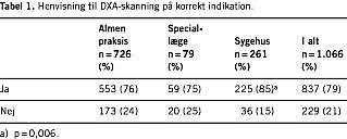 I denne artikel beskrives kvaliteten af henvisninger til DXA-skanning, og i hvilket omfang patienterne blev skannet på korrekt indikation.