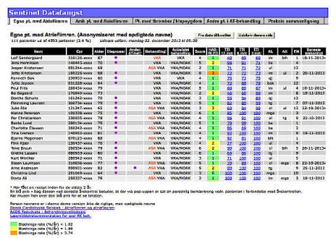 Med eksempel ud fra kvalitetsrapport vedr. antikoagulans (AK)-behandling af patienter i almen praksis (se figuren) kan de praktiserende læger på en hurtig og overskuelig måde få overblik over alle patienter tilknyttet deres klinik, som er i AK-behandling, samt status på behandlingen gennem oplysning om TTI.