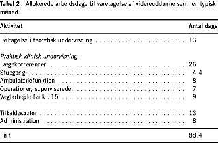 Det samlede antal arbejdsdage til varetagelse af videreuddannelsen udgør således 88,4 svarende til 13% af alle lægetimer (Tabel 2 ).