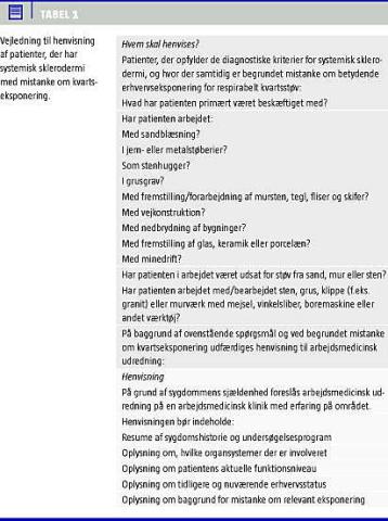 ERHVERVSEKSPONERING FOR KVARTS OG SYSTEMISK SKLERODERMI