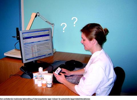 En norsk undersøgelse på intensivpatienter har vist, at denne patientgruppe i gennemsnit behandles med 7,4 lægemidler [1]. Til sammenligning har en dansk undersøgelse af receptdata fra fynske medicinbrugere vist, at en tredjedel af den undersøgte befolkning var i behandling med to eller flere lægemidler. Af disse modtog 15,6% kombinationer af lægemidler, som -potentielt kunne medføre interaktioner. De fynske medicinbrugere blev i gennemsnit behandlet med 3,4 lægemidler [2]. Der er tidligere vist en sammenhæng mellem antallet af lægemidler og antallet af potentielle lægemiddelinteraktioner (PLI) [3]. Det forventes derfor, at der er større risiko for PLI for intensivpatienter end for patienter i primærsektoren.