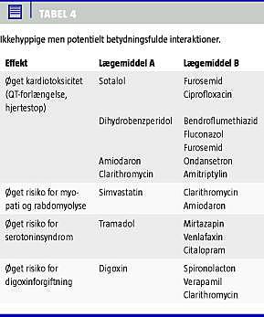 Klinisk betydning af hyppige potentielle lægemiddelinteraktioner