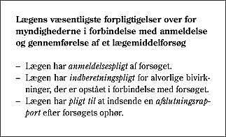 Man har som læge pligt til at anmelde forsøg til myndighederne, hvis der afprøves lægemidler på mennesker. Lægemiddelstyrelsen er den ene af de myndigheder i Danmark, der varetager vurderingen af anmeldelser af lægemiddelforsøg. Den anden myndighed er det videnskabsetiske komitésystem.