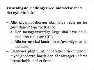 Der er i EU-regi vedtaget et nyt direktiv omhandlende myndighedsbehandling af kliniske forsøg (6).