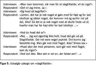 Efter interviewet fik deltagerne udleveret en folder med en kort medicinsk forklaring på de udvalgte ord. De konsekutivt henviste respondenter udviste variation mht. køn, alder og uddannelse, hvorfor strategisk udvælgelse ikke var nødven- dig [9].