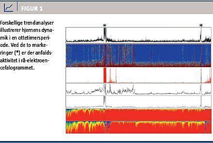 Som noget nyt har vi nu fået mulighed for, at man på neurofysiologiske afdelinger i Danmark, som i de fleste andre lande, som vi sammenligner os med, tilbyder kontinuert EEG-monitorering (cEEG) døgnet rundt. Monitoreringen har til formål at diagnosticere tilfælde af status epilepticus, cerebral vasospasme og cortical spreading depression samt at monitorere effekten af de respektive behandlingstiltag [4]. Særlige målgrupper er patienter med akutte traumer og intracerebrale blødninger samt patienter, som har været i status epilepticus. Imidlertid må man forestille sig, at undersøgelsen også vil blive benyttet hos patienter med cerebral anoksi efter f.eks. hjertestop. Endelig kan cEEG bruges til at give en meget præcis vurdering af sedationsgraden, hvilket kan blive et andet stort anvendelsesområde.