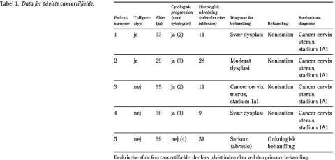 Diskussion: 1) Kompliansen var ikke optimal. 2) Cytologisk opfølgning efter et halvt år er en sikker metode til opsporing af senere behandlingskrævende forandringer.