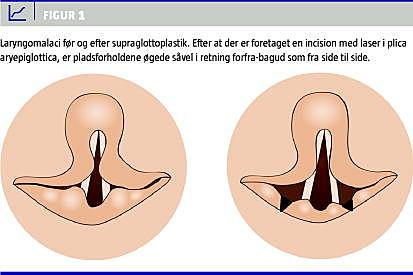 Den kirurgiske behandling af laryngomalaci består af supraglottoplastik, hvor plicae aryepiglottoticae spaltes på tværs med CO2 -laser for at åbne det forsnævrede supraglottiske rum (Figur 1 ) [2, 4, 5]. Per- og postoperativt anbefales kortikosteroidinjek-tioner og aggressiv antirefluksbehandling med omeprasol (1 mg/kg × 1) eller ranitidin (3 mg/kg × 3) [2, 4].