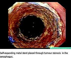 SEMS og APC er palliative behandlinger med beskedne komplikationer i tilslutning til proceduren hos patienter med obstruerende malign stenose på den gastroøsofageale overgang. Der kan ikke påvises forskel i overlevelsestiden mellem SEMS og APC. Sammenholdt med patienter, som ud over SEMS og/eller APC fik palliativ kemoterapi eller kemo-stråle-terapi, observeredes kun temporært bedre overlevelse.