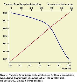 I det Nationale Indikator Projekt registreredes 1.909 patienter med apopleksi og atrieflimren (AF) uden kontraindikationer mod antikoagulans (AK). Instituering af AK-behandling foretaget hos 60,2% var signifikant associeret med alder og apopleksiens sværhedsgrad. I en Cox proportional hazard -regressionsmodel var risiko for død næsten fordoblet hos patienter, der ikke fik AK-behandling ( hazard-ratio : 1,91, 95% konfidensinterval: 1,44-2,52). Undersøgelsen tyder på, at især ældre mennesker med apopleksi og AF underbehandles, og at det forøger mortaliteten.