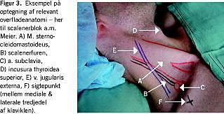 Den relevante overfladeanatomi optegnes på patienten (Figur 3 ).