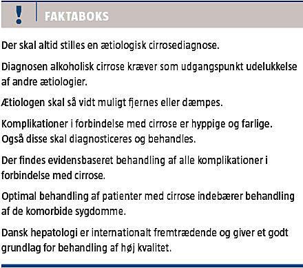 til hyppig kontakt til sundhedsvæsenet. Alle klinisk arbejdende læger kommer således ud for at skulle træffe alvorlige og vanskelige beslutninger i disse sygdomsforløb. Det er vi godt rustede til i Danmark pga. vores betydelige videnskabelige indsats vedrørende cirrose.