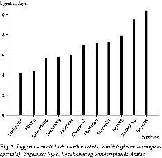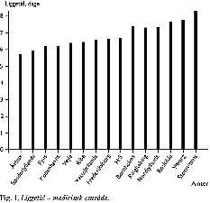 Diskussion: Der var ikke noget typisk mønster i variationerne i liggetiden, men en relativt kontinuerlig fordeling med nogle ekstreme afvigelser. En meget kort liggetid er i sig selv ikke attraktiv, og kun hvis den er kombineret med en høj kvalitet i behandlingen og en god økonomi er den et mål. Lægefagligt er der ikke belæg for at et langvarigt sengeleje gavner patienterne. På den anden side kan liggetiden blive så kort, at det bliver inhumant og fører til risikobetonet adfærd. Balancen mellem disse forhold bestemmer formentlig liggetiden og bør derfor analyseres yderligere.