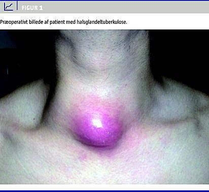 Absces- og fisteldannelse var tidligere velkendte komplikationer hos patienter med ekstrapulmonal tuberkulose i den vestlige verden. Især i de tilfælde, hvor de cervikale og mediastinale glandler var involverede, var det ikke usædvanligt, at sygdommen først blev erkendt efter fremkomsten af en udtømmende halsabsces [1]. Disse følger efter scrofulose (lymfeknudetuberkulose) ses stadigvæk i den tredje verden, hvor 95% af verdens tuberkulosetilfælde findes [2]. Ved de seneste vurderinger tyder det på, at op til en tredjedel del af verdens befolkning er smittet med Mycobacterium tuberculosis , og at omkring tre millioner mennesker årligt dør pga. tuberkulose [3]. I Danmark blev 100 patienter diagnosticeret med ekstrapulmonal TB i 2006, hvilket udgør 27% af de samlede TB-tilfælde [4]. Der er så vidt vides ikke foretaget undersøgelser, mht. hvor mange der havde abscesser pga. lymfeknudetuberkulose i sygdomsforløbet, men dette kan meget vel afspejle, at der er tale om ganske få tilfælde. Lymphadenitis er i Danmark og på det globale plan den mest almindelige ekstrapulmonale manifestation af tuberkulose, og halsglandelsvulst er den mest almindelig kliniske manifestation [5]. Tidlig opdagelse af TB-smitte og hurtig behandlingsstart har næsten udryddet forekomsten af udtømmende halsabscesser i Danmark, men med bl.a. den stigende rejseaktivitet og immigration samt tilkomsten af koinfektioner som hiv, anbefales det, at TB udgør en differentialdiagnose ved cervikal og mediastinal glandelsvulst. De seneste studier i både vesten og den tredje verden viser, at finnålsbiopsi (FNA) er et vigtigt og forholdsvist nemt redskab til at diagnostisere ekstrapulmonal tuberkulose svarende til halsglandlerne. Metoden kræver modsat ekstirpation, ingen kirurgisk træning og kan foretages inden for det primære sundhedsvæsen sammen med en Mantouxtest. Ved usikkert diagnostisk resultat bør der foretages ekstirpation af lymfeknuden. Røntgen af thorax hører med i udredningen af en patient, der er mistænkt for TB. Et negativt røntgen af thorax udelukker imidlertid ikke ekstrapulmonal-TB, da lungelæsioner kun forekommer hos mindre end 20% af patienter med halsglandel TB.