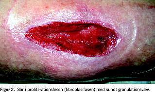 Sår i proliferationsfasen (Figur 2 ) renses 1-2 gange ugentligt.