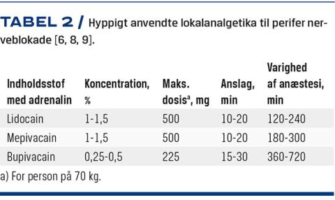 Formålet med denne artikel er at give en koncis gennemgang af de hyppigst anvendte lokalanalgetika til klinisk praksis for alle faggrupper med særligt fokus på farmakologi, kirurgisk applikation, adjuvanter og