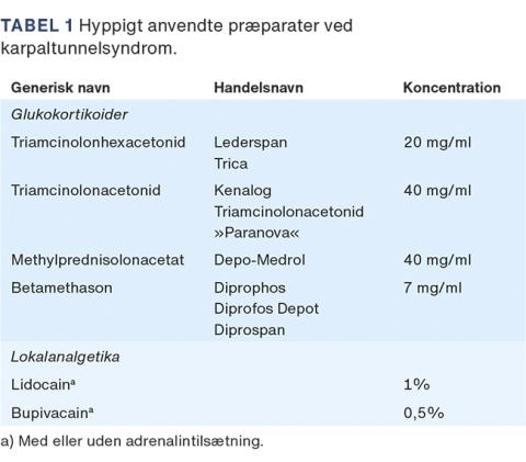 En oversigt over hyppigt anvendte præparater ved CTS ses i Tabel 1[6-8].