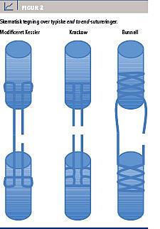 End to end -suturering med polyestersutur ad modum Krackow, modificeret Kessler eller Bunnell (Figur 2 ). En medial adgang er oftest anbefalet af hensyn til nervus suralis.