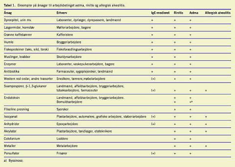 I det følgende vil vi fokusere på astma, rinitis og allergisk alveolitis, sygdomme, som kan være (men ikke nødvendigvis er) betinget af allergi, og som kan forårsages af eksponeringer i arbejdsmiljøet.