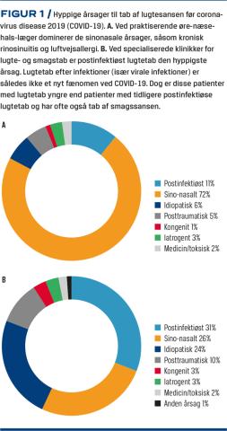 Siden coronavirus disease 2019 (COVID-19) blev identificeret ved årsskiftet, har over 7.140.000 mennesker på verdensplan været inficeret med det nye coronavirus, severe acute respiratory syndrome coronavirus 2 (SARS-CoV-2) pr. 11. juni 2020. Den 11. marts blev COVID-19 klassificeret som en pandemi, der på verdensplan har haft betydelige sundheds- og samfundsmæssige og ikke mindst økonomiske konsekvenser. I Danmark blev sundhedsvæsenet mobiliseret til at varetage behandlingen af patienter med COVID-19 og identificere smittede. Omstruktureringen af ressourcer og øgning af SARS-CoV-2-testkapacitet blev iværksat med løbende ændringer af retningslinjer for at opfylde det potentielle behov for behandling, identifikation af smittede og vitale sundhedsmæssige funktioner. Et vigtigt element i dette arbejde var en løbende opdatering af SARS-CoV-2-relaterede symptomer, der initialt omfattede feber, hoste, ondt i halsen, hovedpine, muskelømhed og respiratoriske symptomer. Efter både internationale og nationale beretninger om tab af lugte- og smagssansen ved COVID-19 [1, 2] blev disse symptomer inkluderet i Sundhedsstyrelsens anbefalinger den 4. maj 2020 [3].