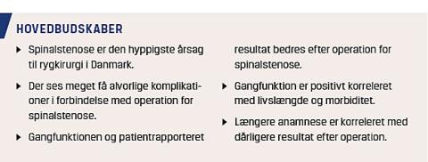 Spinalstenose er et primært klinisk syndrom, patienterne er generet af nedsat gangdistance og smerter i