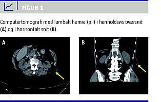 En 75-årig kvinde havde igennem flere år haft ukarakteristiske ryggener og igennem et år bemærket en bule i venstre flanke. Hævelsen var langsomt tiltaget i størrelse og med det generne i form af smerter. Bulen var fuldt reponibel, og der var ikke anamnestiske inkarcerationstilfælde.