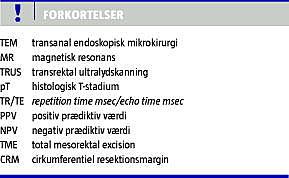 På Hvidovre Hospital har man siden 2001 an-vendt MR-skanning af rektum til præoperativ stadieinddeling og suppleret med TRUS hos udvalgte patienter.