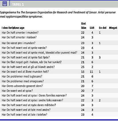 Patienterne blev interviewet i forbindelse med efterundersøgelsen dels vedrørende livskvalitet generelt efter behandling, dels vedrørende livskvalitet med fokus på tale-, synke-, og spisefunktionen samt den sociale adfærd, der er associeret hertil.