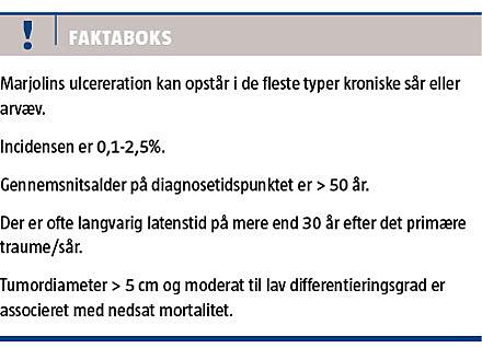 Marjolins ulceration (MU) er en malign tumor, som kan opstå i kroniske sår eller arvæv efter langvarig inflammatorisk eller traumatisk skade på huden. Tilstanden er sjælden, men aggressiv, hvorfor tidlig diagnosticering og behandling kan være af stor betydning for morbiditet og mortalitet.