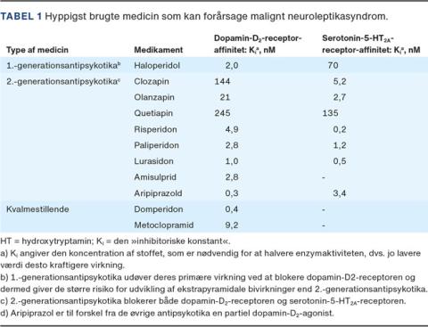 Malignt neuroleptikasyndrom er en sjælden, men potentielt dødelig komplikation til brug af neuroleptika/antipsykotika, og mortaliteten ligger på 10-20% ved behandling og på ca. 75% uden behandling [1, 2]. Førstegenerationsantipsykotika (f.eks. haloperidol) medfører større risiko for udvikling af syndromet, men det kan ses ved brug af alle antipsykotika og særligt ved kombinationsbehandling samt ved brug af kvalmestillende præparater (f.eks. domperidon).