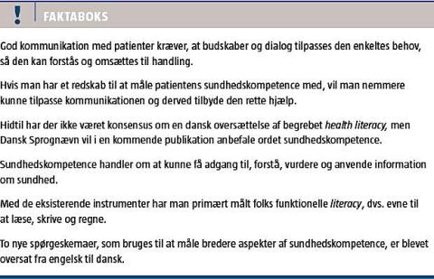God kommunikation med patienter kræver, at budskaber og dialog tilpasses den enkeltes behov, før den kan forstås og omsættes til handling. Det er en enkel regel, som få sundhedsprofessionelle vil være uenige i. Men de samme sundhedsprofessionelle ved også, hvor svært det i praksis er at vurdere en patients informationsbehov, og ikke mindst at vurdere hvordan informationen bliver forstået, og hvilke muligheder patienten har for at omsætte informationen til viden og handling. Med det stigende fokus på, at især personer med kroniske sygdomme skal kunne håndtere en større del af deres kontakt med sundhedsvæsenet via digitale medier såsom computere og smartphones, er det vigtigere end nogensinde, at kommunikationen er tilpasset den enkelte patient. Med mulighed for at få afdækket patientens health literacy er vi nærmere ved at kunne tilbyde den rette hjælp og øge kvaliteten af sundhedsvæsenets kommunikationsmuligheder.