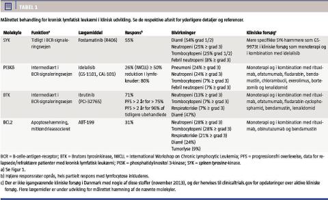 Ved målrettet hæmning af BCR-signaleringsvejen har man fokuseret på SYK, BTK og PI3K (Tabel 1), og der er opnået meget lovende resultater i både prækliniske og kliniske forsøg. Resultaterne fra disse kliniske forsøg og baggrunden for dem vil blive gennemgået her.