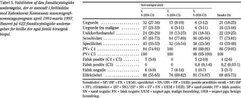 Validitetsmålene på den finnålscytologiske undersøgelse blev beregnet efter Fornages metode (10) (Tabel 3 ).