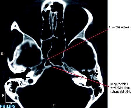 Ved en computertomografi (1-mm-snit) af ansigtsskelettet blev der påvist en 2-mm-knogledefekt.