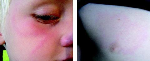 En fireårig dreng fik efter to dage med feber 5-6 diskrete blegrøde, ikkeskællende, ringformede elementer i hudniveau på truncus og ekstremiteterne. Der var ingen gener fra udslættet, som var tydeligst efter varmepåvirkning. Diagnosen multipel erythema migrans (EM) blev stillet, da der de efterfølgende dage tilkom tydeligere aftegnede elementer i ansigtet. Efter to døgns behandling med penicillin var uslættet væk. Der var ingen erindring om flåtbid i de foregående ni måneder, men barnet var flere gange tidligere blevet bidt af skovflåter på Bornholm.