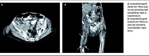 Patienten havde igennem to dage haft tiltagende smerter og hævelse i højre lyske og lår.
