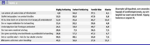 Undersøgelsen viste også, at oversættelse af medicinske fagudtryk til danske ord, f.eks. hjerte-kar-sygdomme, blodkar og mave-tarm-kanal, heller ikke øgede forståelsen.